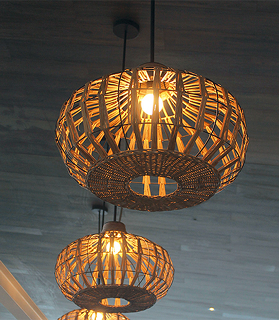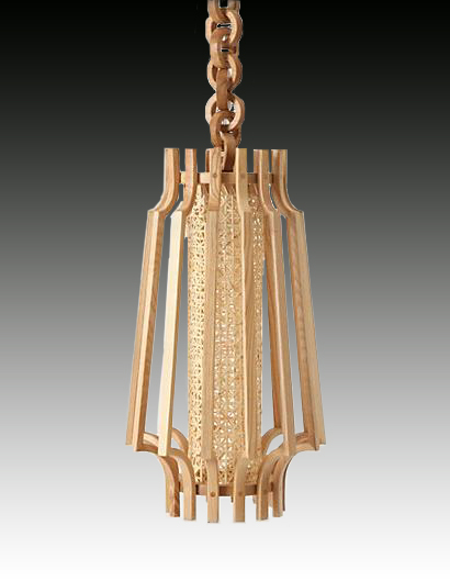 Lampara mod. Victoria fabricada en madera y laminas de resina
