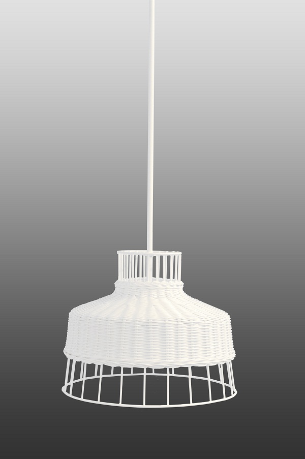 Lampara mod. Adolfa fabricada en alambron de acero con aplique de mimbre