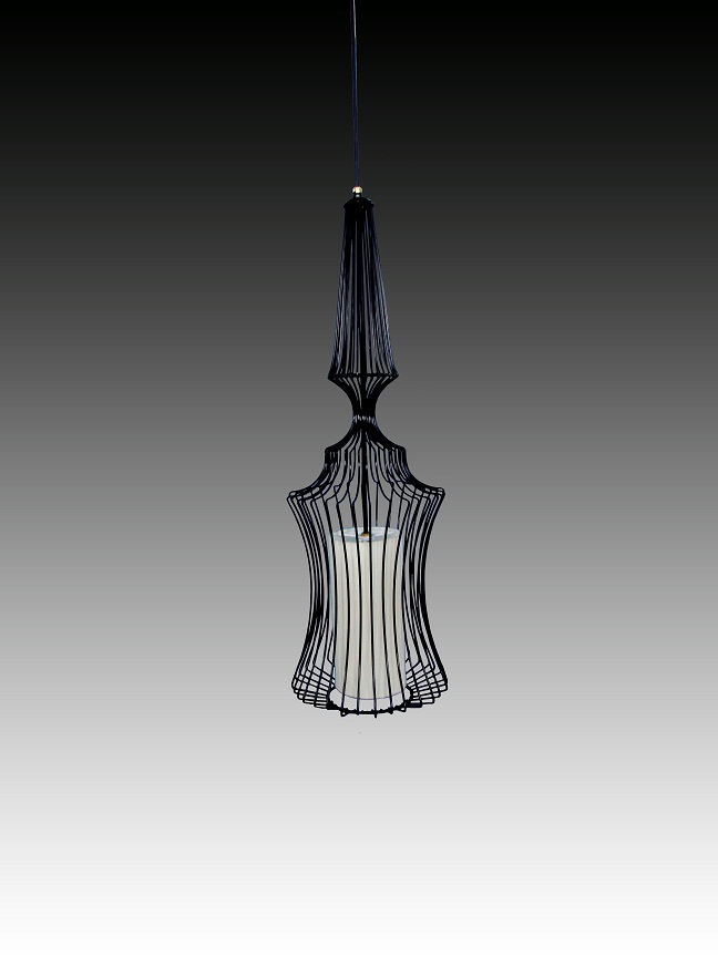 Lampara mod. Celina fabricada en alambron de acero terminado pintura electrostatica pantalla de vidrio