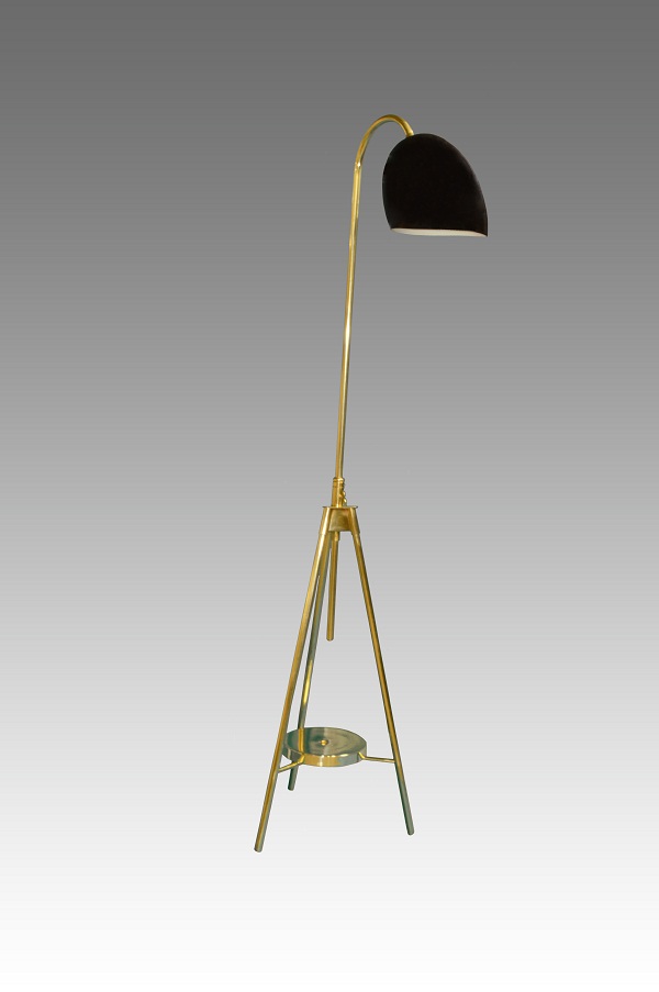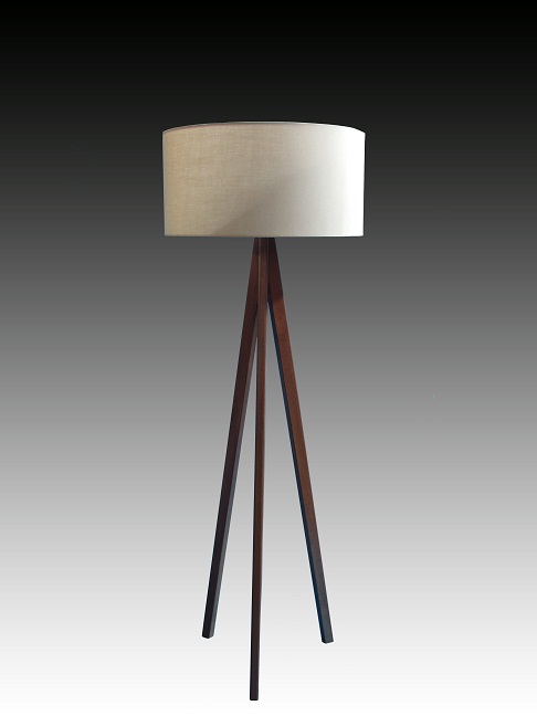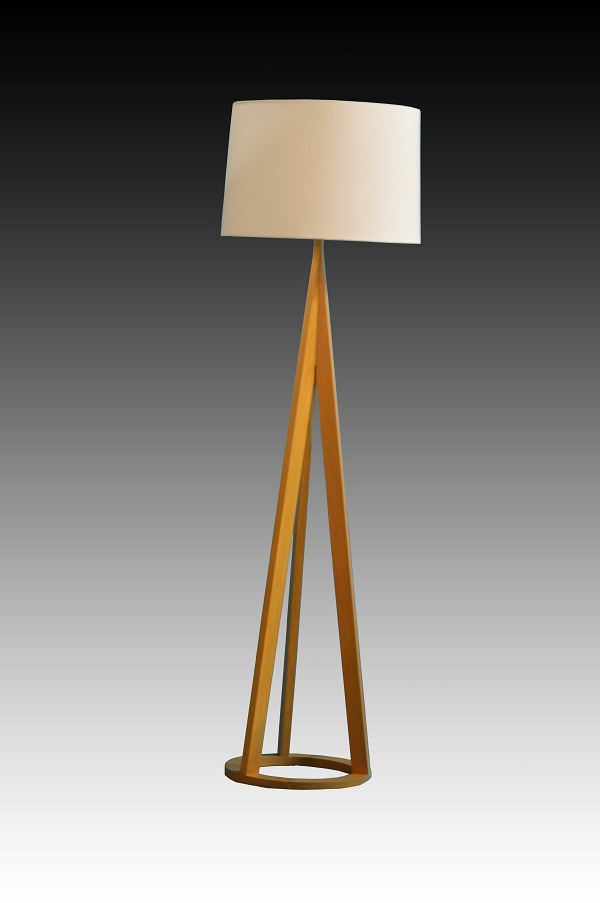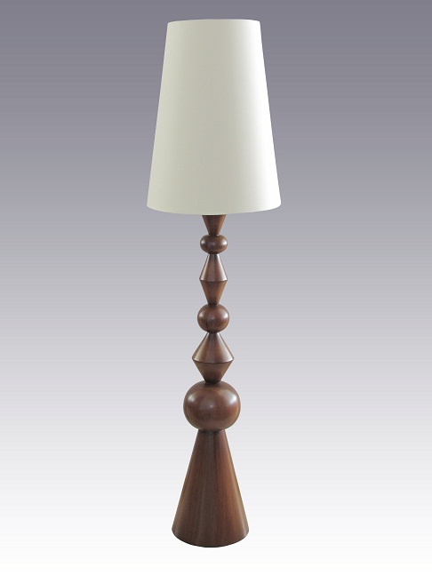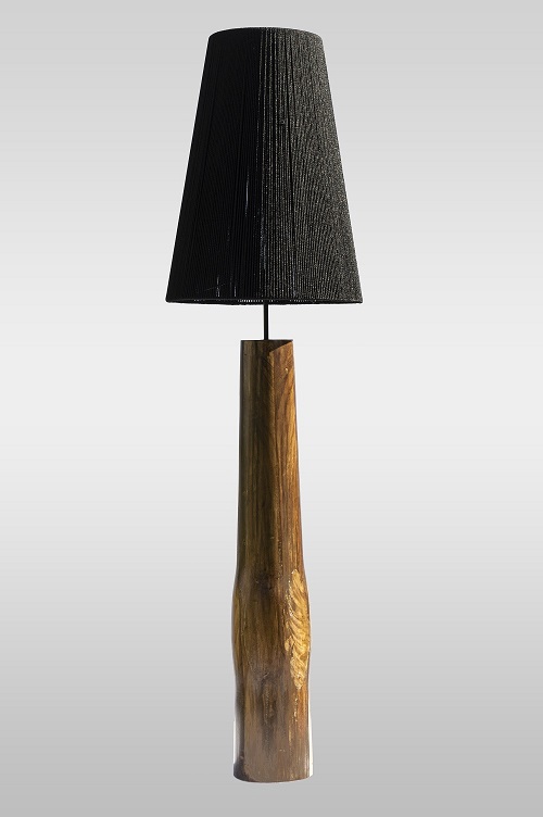 Lampara de Pie Fabricada en madera recuperada, pantalla fabricada en macramé